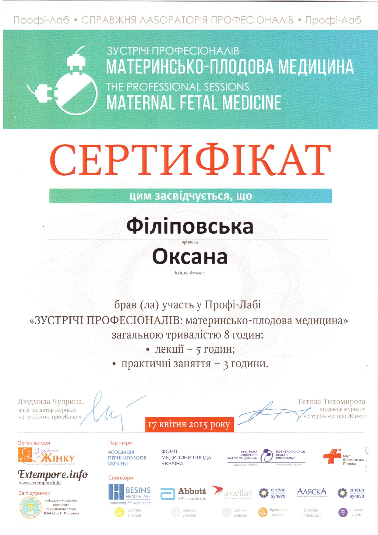 - «Материнско-плодовая медицина», встреча профессионалов Профи-Лаб, 2015 г., Киев