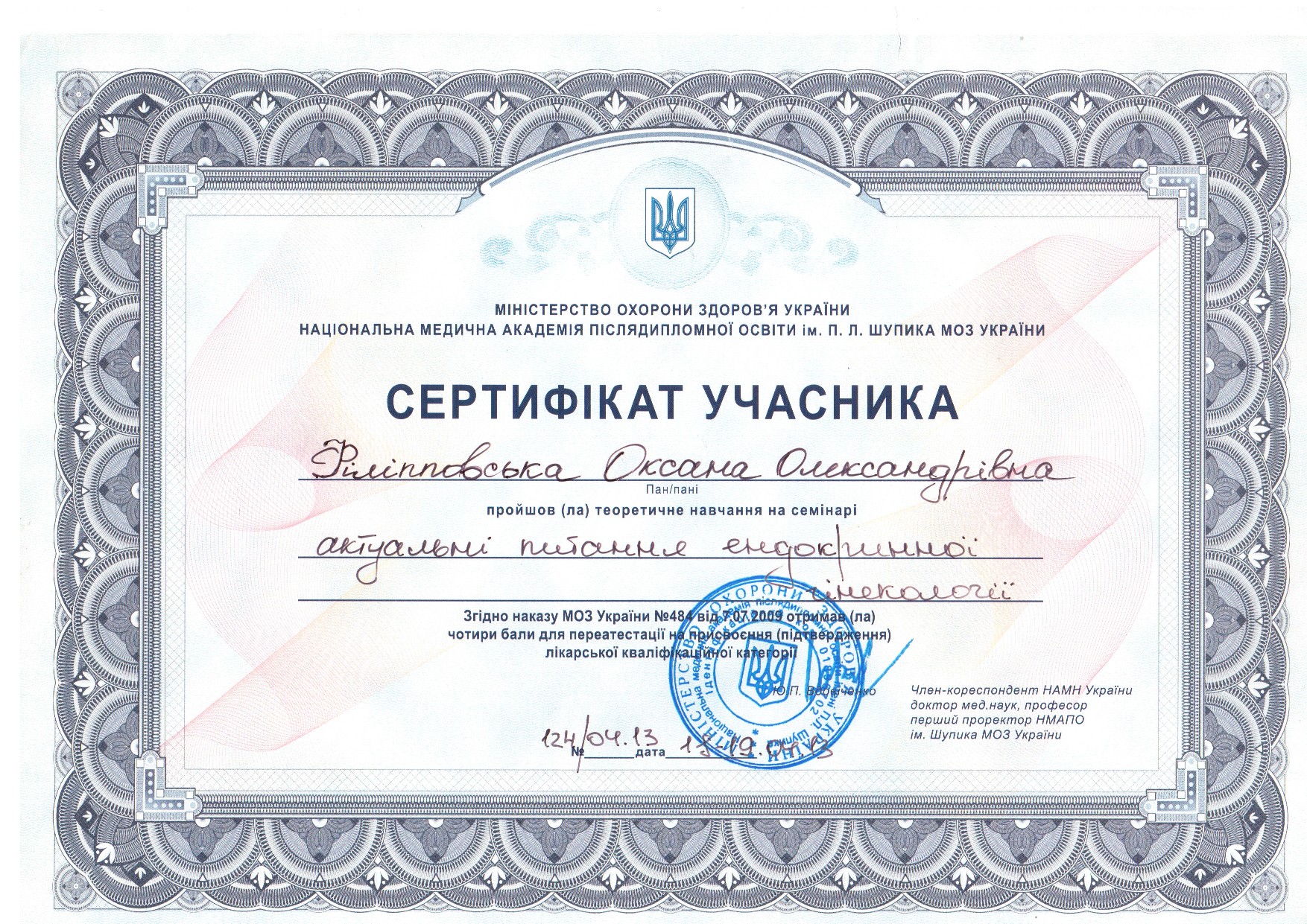- «Актуальные вопросы эндокринной гинекологии», курс Национальной Медицинской Академии им. Шупика МОЗ Украины, 2013 г., Киев