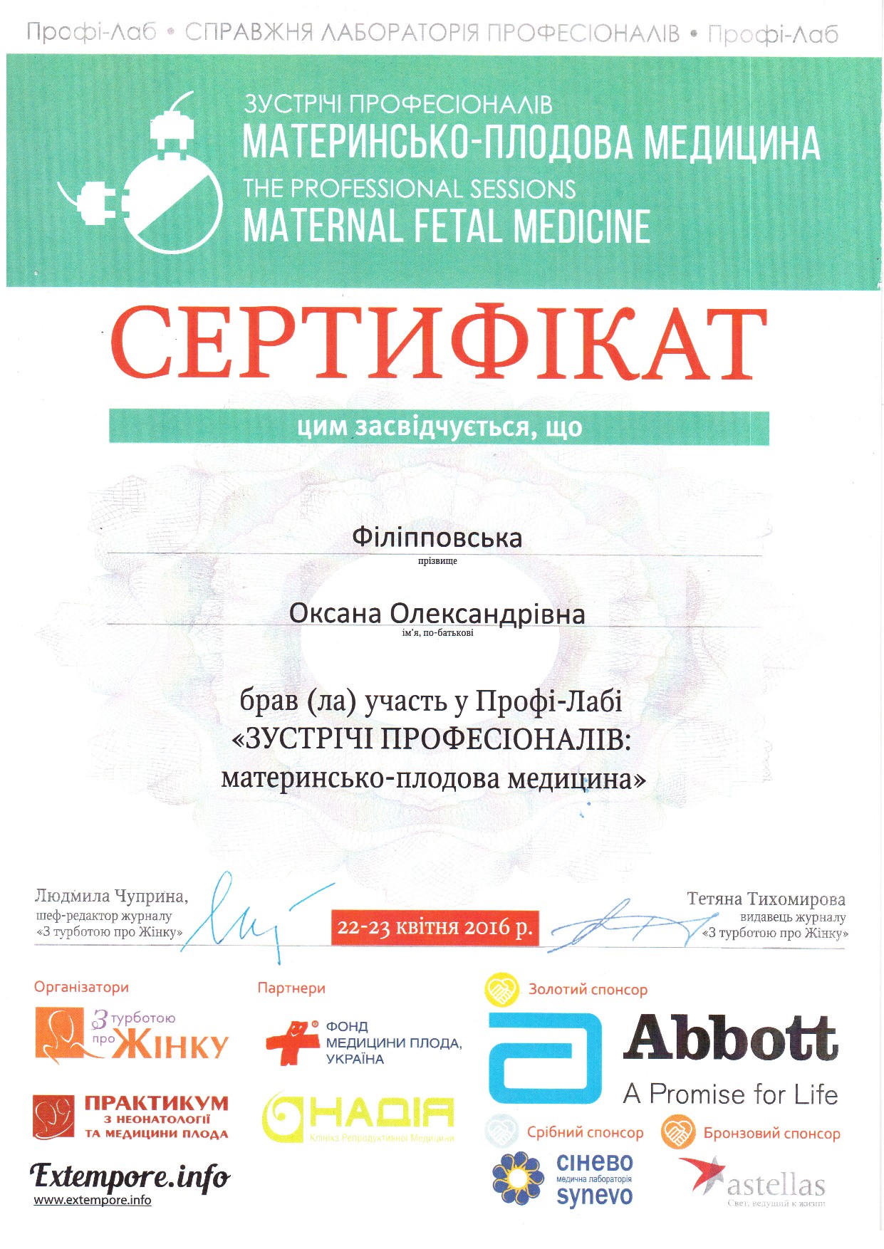 - «Материнско-плодовая медицина», встреча профессионалов Профи-Лаб, 2016г., Киев