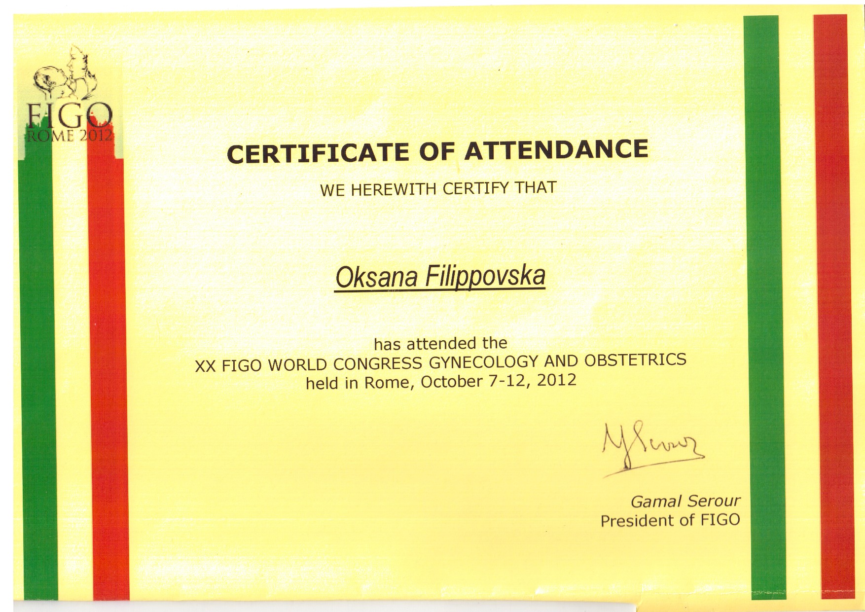 - FlGO, Всемирный конгресс акушерства и гинекологии, Международная федерация акушерства и гинекологии, 2012 г., Рим (Италия)